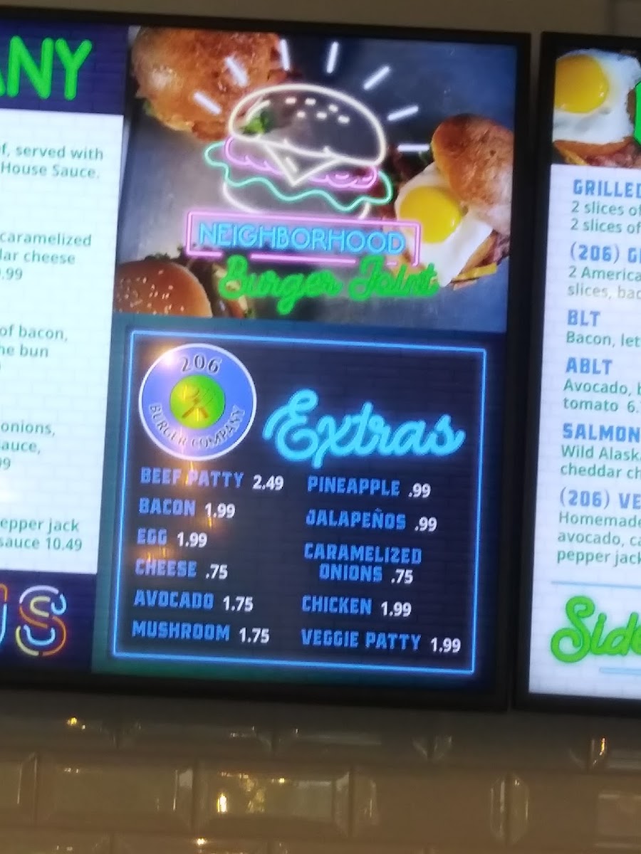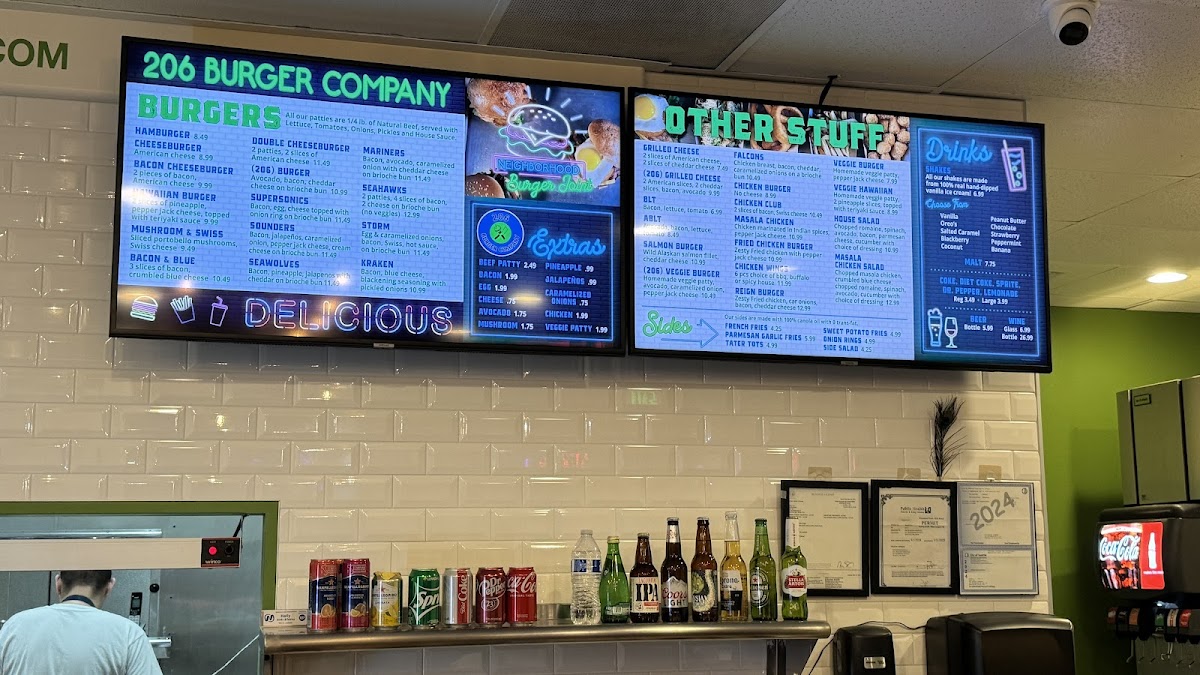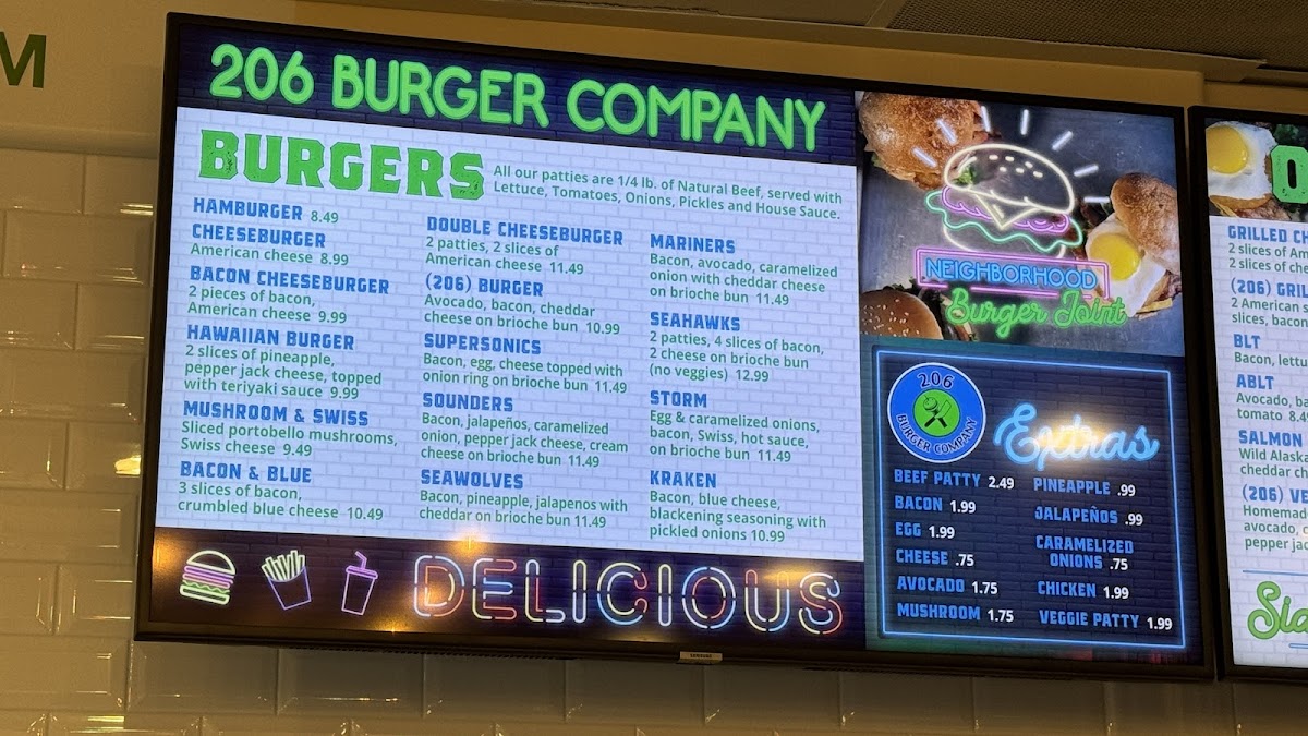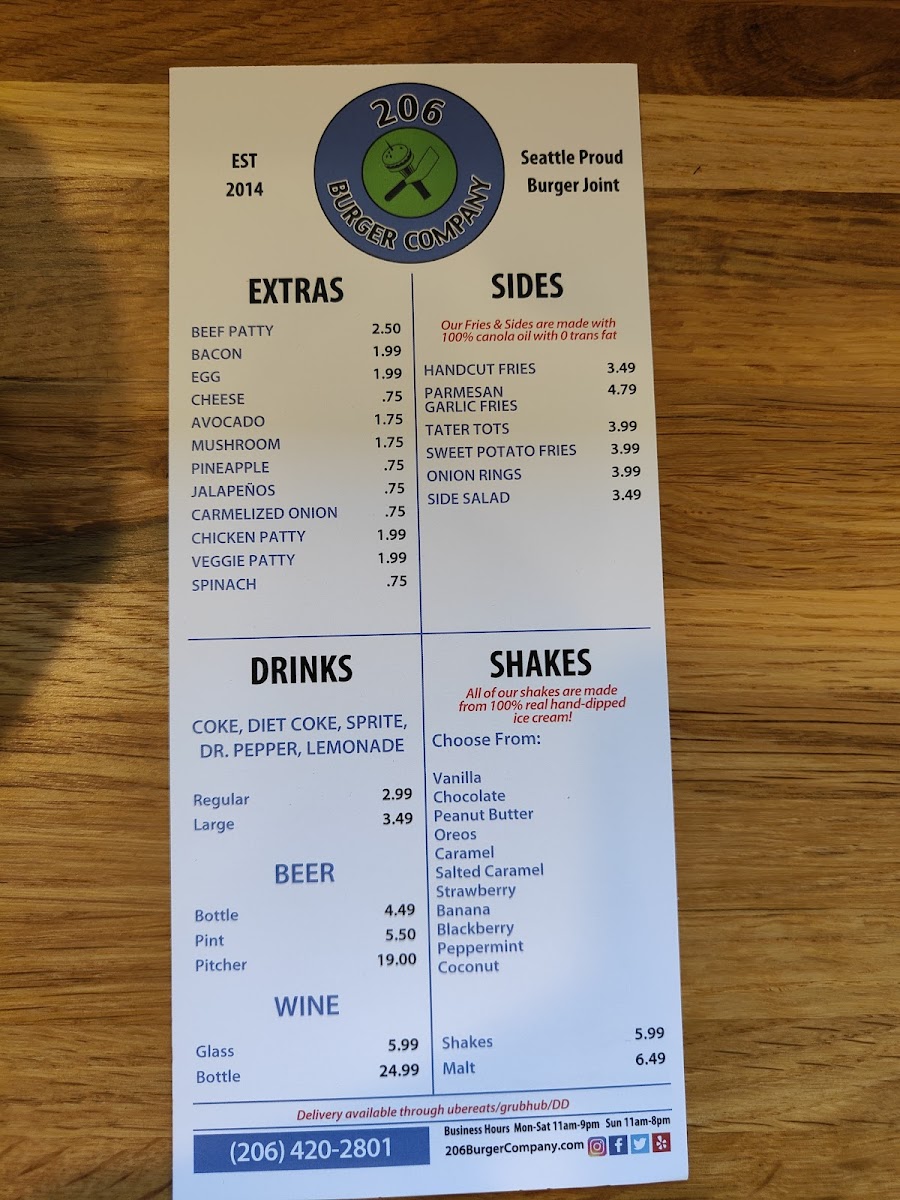 1/4 lb Natural Beef Patty, American cheese, 2 strips of bacon, Lettuce, Tomato, Onion, Pickle and house Sauce on a Sesame Bun.